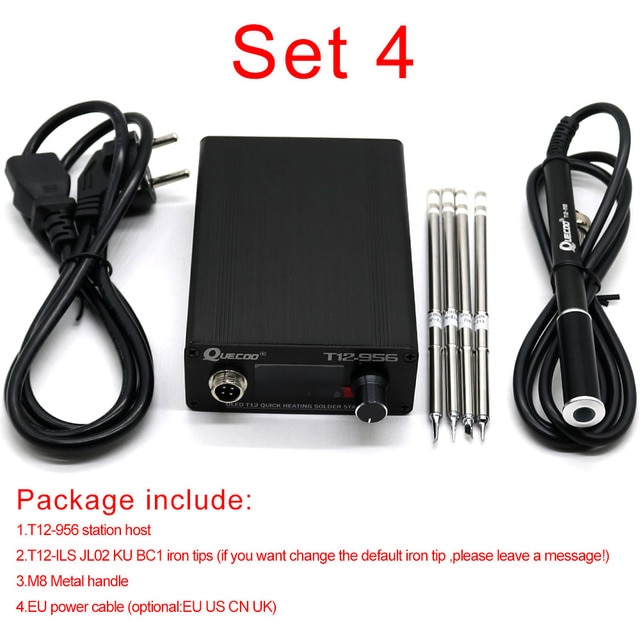 QUECOO T12-956 Soldering Digital Station Electronic Soldering iron OLED 1.3inch with Black M8 handle and T12 soldering iron tips