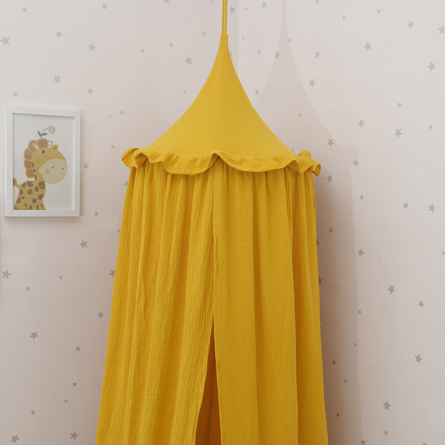 100% Premium Muslin Cotton Hanging Canopy with Frills Bed Baldachin for Kids Room – gold