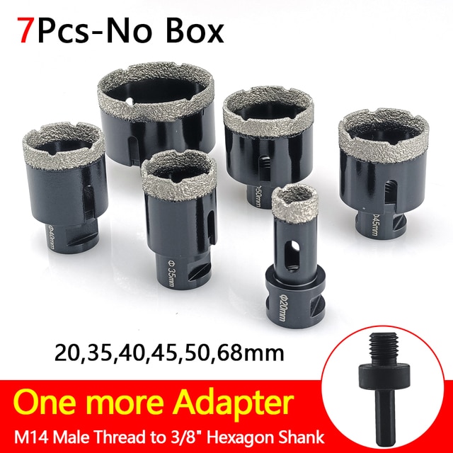 6 Pcs M14 Thread Diamond Dry Drill Bit Vacuum Brazed Drilling Core Bits Set Porcelain Tiles Crowns Granite Marble Hole Saw Tools – 7Pcs-No Box