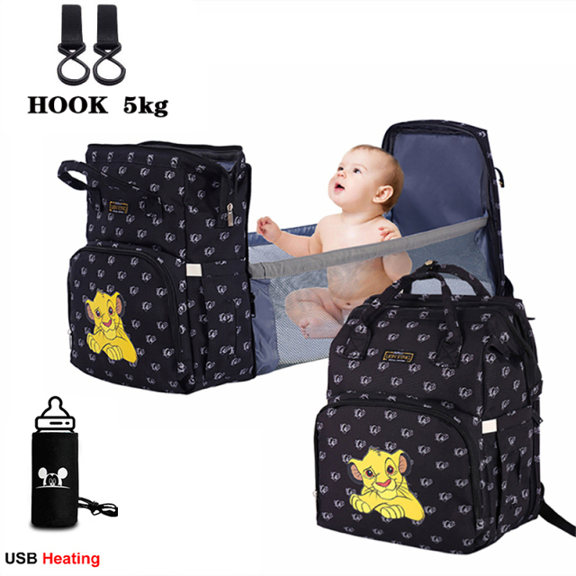 Disney Diaper Bag Backpack With Changing Bed Mommy Baby Stroller Bag Large Capacity Nappy Maternity Care Women Bag The King Lion – Bed Bag-Hook-usb