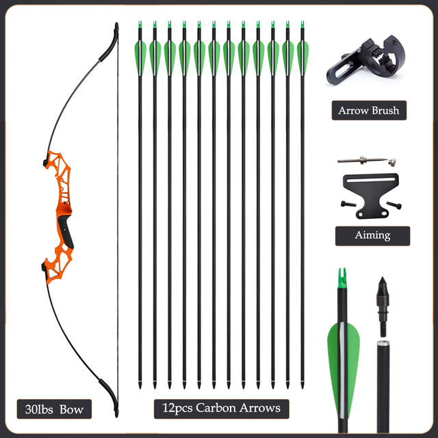 20/30/40/50lbs Archery Bow Recurve Take Down Straight Bow 12pcs Mixed Carbon Arrows Quiver Outdoor Sport Shooting Practice Bow