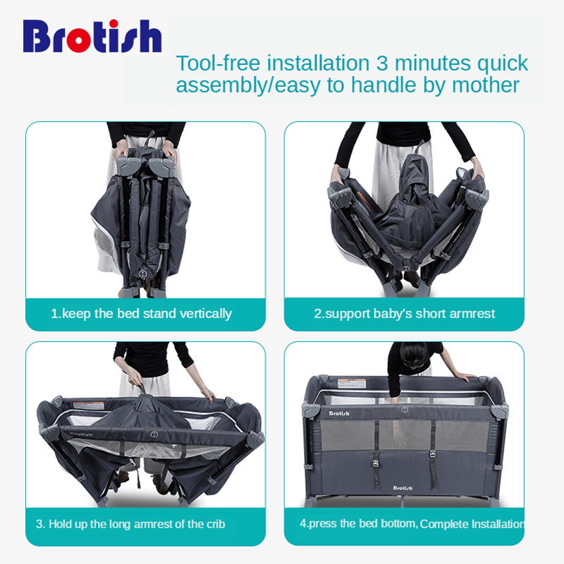 Multifunctional Baby Crib Foldable Baby Bed With Diaper Table Cradle Rocker Travel Game Bed Portable Baby Crib For 0-6 Years Old