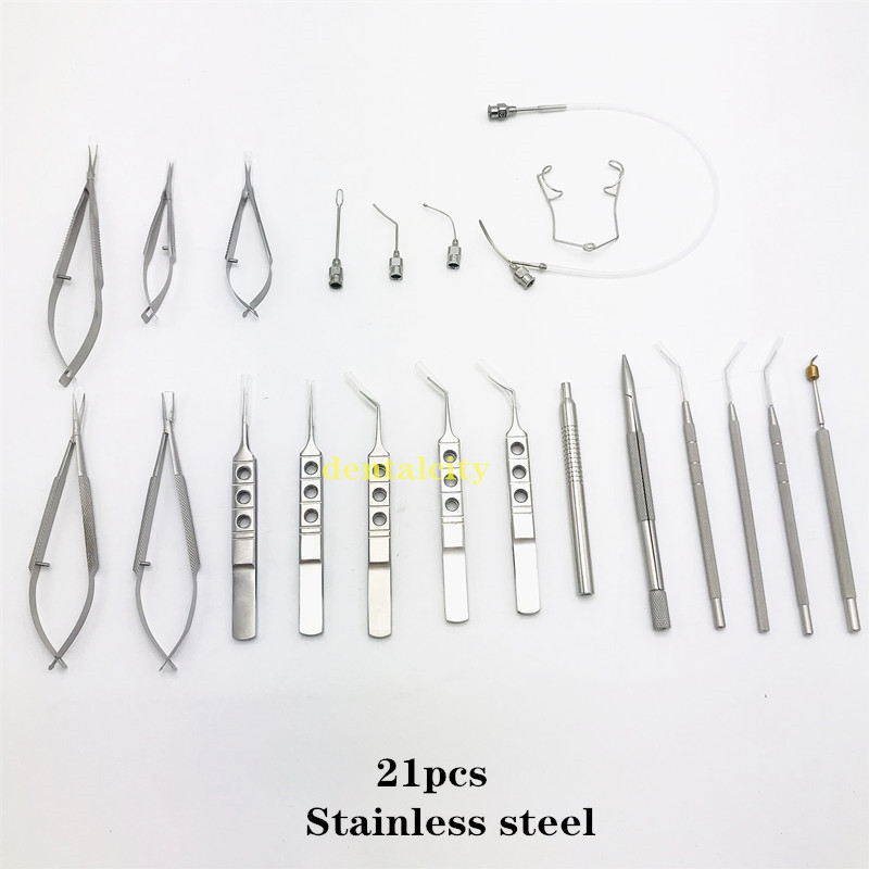 21pcs Ophthalmic Cataract & Intraocular Set Surgical Instrument Eye Micro Surgery Tools
