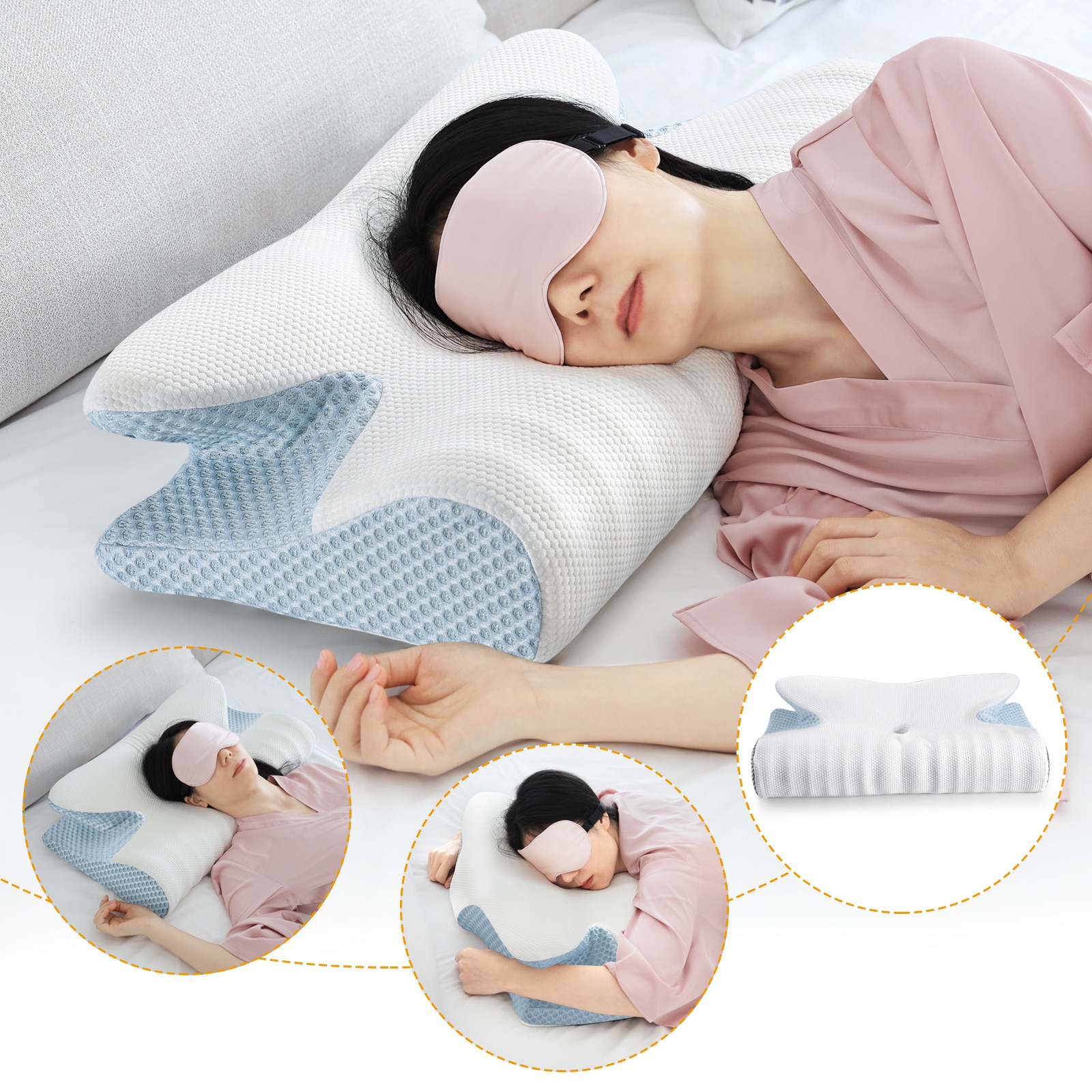 Orthopedic Memory Foam Pillow 60x37cm Slow Rebound Memory Soft Pillow Butterfly Shaped Relax Cervical Neck for Side Back Sleeper