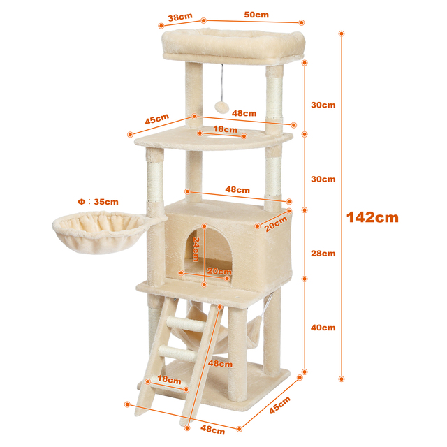 Cat Scratcher Tower Home Furniture Cat Tree Pets Hammock Sisal Cat Scratching Post Climbing Frame Toy Spacious Perch