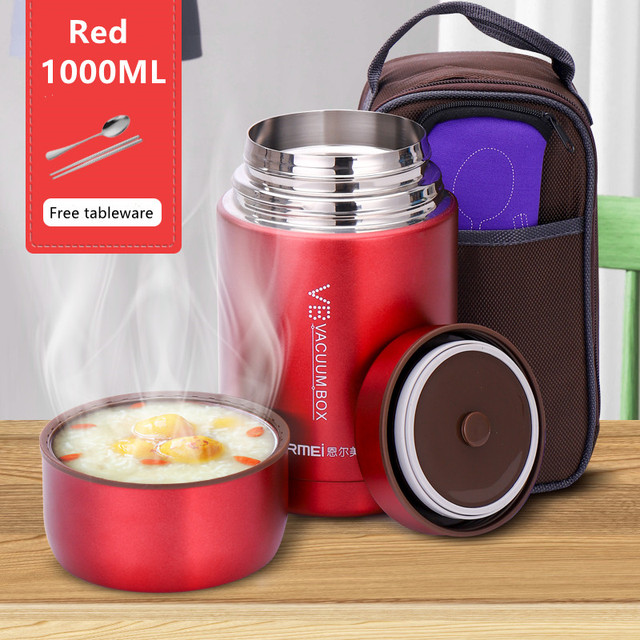 Food Thermal Jar Soup Gruel 316 Stainless Steel Vacuum Lunch Box Office Insulated Thermos Containers Spoon Bag 600/800/1000ML