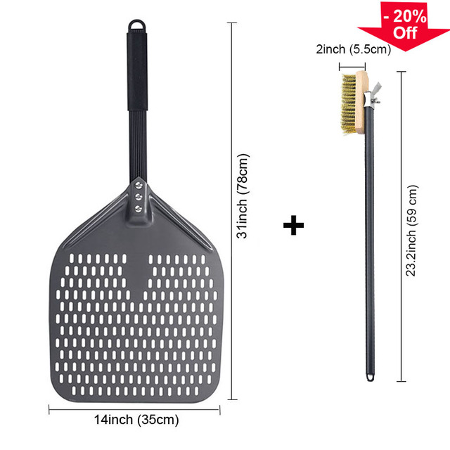 SHANGPEIXUAN 16/14/13/12 Inch Perforated Pizza Peel Rectangular Pizza Shovel Aluminum Hard Coating Pizza Peel Paddle Short Tool – 14 inch and Brush-10