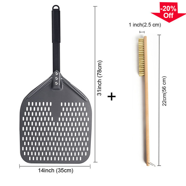 SHANGPEIXUAN 16/14/13/12 Inch Perforated Pizza Peel Rectangular Pizza Shovel Aluminum Hard Coating Pizza Peel Paddle Short Tool – 14 inch and Brush