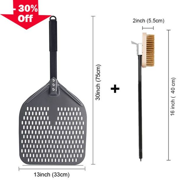 SHANGPEIXUAN 16/14/13/12 Inch Perforated Pizza Peel Rectangular Pizza Shovel Aluminum Hard Coating Pizza Peel Paddle Short Tool – 13 inch and Brush-173