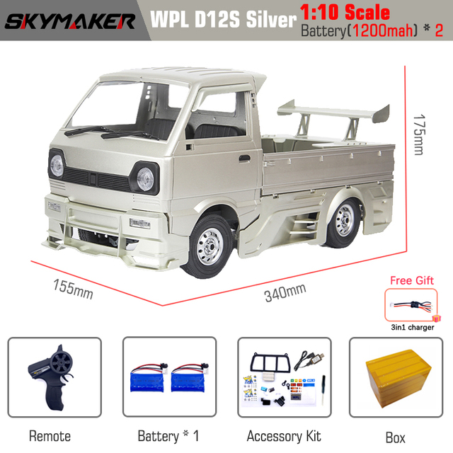 WPL D12 1:10 RC Car Simulation Drift Climbing Truck LED Light On-road 1/16 D12mini D22 D23 mini Cars Trucks For Kids Gifts Toys