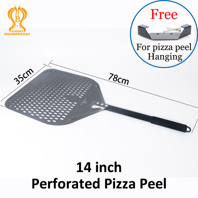 SHANGPEIXUAN 16/14/13/12 Inch Perforated Pizza Peel Rectangular Pizza Shovel Aluminum Hard Coating Pizza Peel Paddle Short Tool – 14 inch Pizza Peel