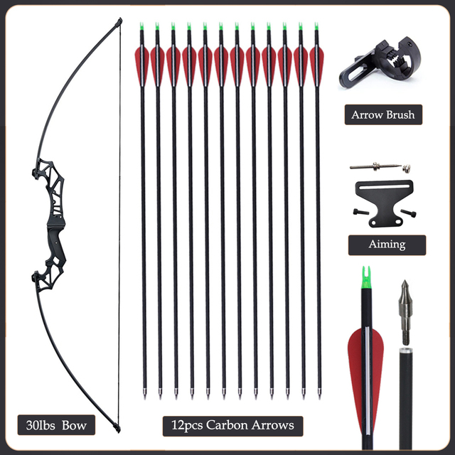 20/30/40/50lbs Archery Bow Recurve Take Down Straight Bow 12pcs Mixed Carbon Arrows Quiver Outdoor Sport Shooting Practice Bow