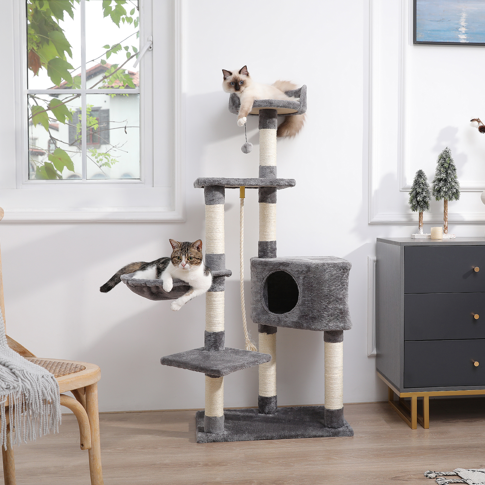 Cat Scratcher Tower Home Furniture Cat Tree Pets Hammock Sisal Cat Scratching Post Climbing Frame Toy Spacious Perch